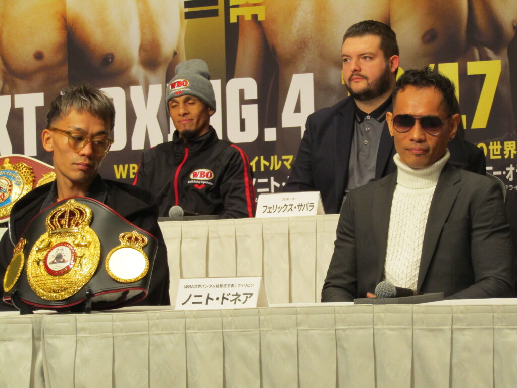プロボクシングのトリプル世界戦(17日・両国)の公式会見が15日、都内ホテルで行われ、WBA世界バンタム級正規王者の堤聖也(29、角海老宝石)と、5階級制覇王者で同暫定王者のノニト・ドネア(43、フィリピン)がそれぞれ意気込みを語った。堤はドネアに2度勝利しているスーパーバンタム級の4団体統一王者の井上尚弥(32、大橋)に助言を求めた一件を巡ってSNSで“プチ騒動”となったが「あれは違うんです」と釈明。改めてモンスターからヒントを得たことを明かし「倒されても倒し返せばいい」との悲壮な決意を口にした。なお試合の模様はU―NEXTで独占ライブ配信される。