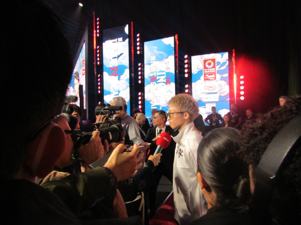 サウジの王族と間違うような“正装”の民族衣装で現れたIBF世界スーパーフライ級王座に挑戦する寺地拳四朗(BMB)のインパクトが抜群だったが、海外メディアのインタビューが殺到したのはやはり井上だった。