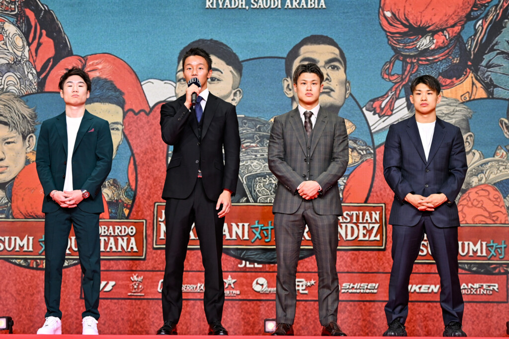 プロボクシングのスーパーバンタム級4団体統一王者の井上尚弥(32、大橋)とWBC同級2位のアラン・ピカソ(25、メキシコ)の防衛戦をメインに12月27日にサウジアラビアのリヤドで行われる「THE RING V: NIGHT OF THE SAMURAI」の記者会見が7日、都内のホテルで出場6選手が参加して開かれた。同興行では来年5月に東京ドームで激突する前WBC&IBFバンタム級う王者の中谷潤人(27、M・T)もスーパーバンタム級へのテストマッチを戦い、2人にとって絶対に負けられない“前哨戦”となる。また前WBA&WBC統一世界フライ級王者、寺地拳四朗(33、BMB)のIBF世界スーパーフライ級王座への挑戦、堤駿斗(26、志成)のWBA世界スーパーフェザー級暫定王座への挑戦に、弟の堤麗斗(23、志成)のプロ4戦目、前日本ライト級王者の今永虎雅(26、大橋)と“キューバの怪物”の注目マッチも行われる。