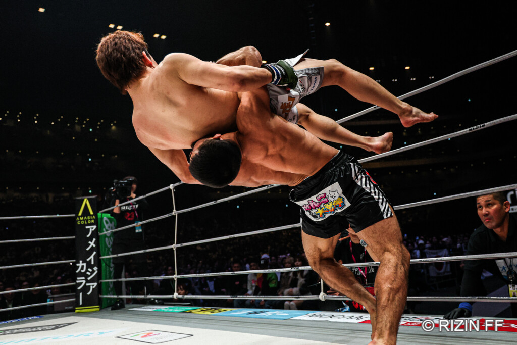 総合格闘技イベント「RIZIN師走の超強者祭り」が、大晦日にさいたまスーパーアリーナで行われ、RIZINフェザー級タイトルマッチで挑戦者の朝倉未来(33、JTT)が王者のラジャブアリ・シェイドゥラエフ(25、キルギス)に1回2分54秒で衝撃的なTKO負けを喫した。勇敢に組んだ朝倉だったが軽々と持ちあげられ頭からマットに叩きつけられると、ジャーマンの2連発で投げ飛ばされ、最後はバックマウントを取られて、パウンドの嵐を浴びて意識を失い、レフェリーがTKOを宣告した。朝倉は担架で退場し、そのまま救急搬送された。朝倉は自身のインスタグラムで「眼窩底骨折」の疑いを明かしている。