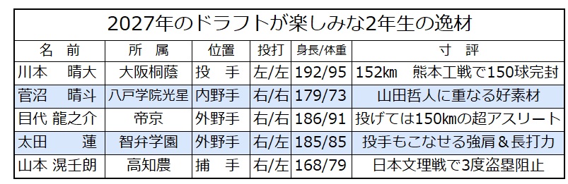 松井氏はドラフト戦線に異常があり、今大会では川本に代表されるような2年生に逸材が目立ったという。