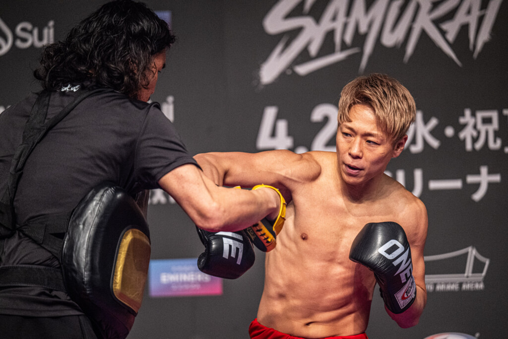 武尊は公開練習で右の打ち下ろしを何発が披露した(写真・ONE SAMURAI 1 プレスカンファレンス&オープンワークアウト )